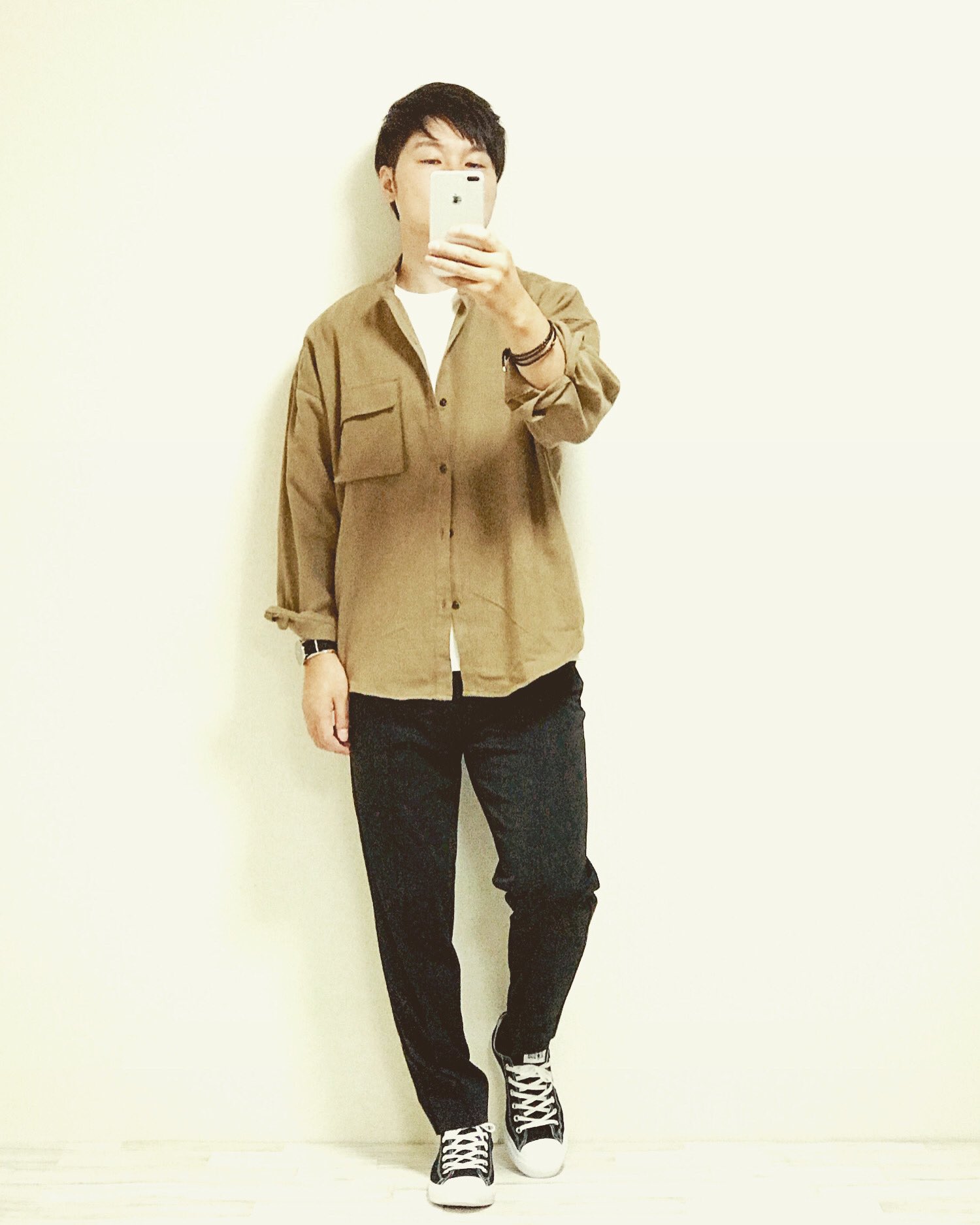 トモ メンズファッションブロガー Pa Twitter バンドカラーシャツを使ったコーデです シャツ Jiggysshop Tシャツ パンツ Adamerope スニーカー Converseallstar 時計 バングル Danielwellington 秋コーデ メンズファッション コーデ ベージュ